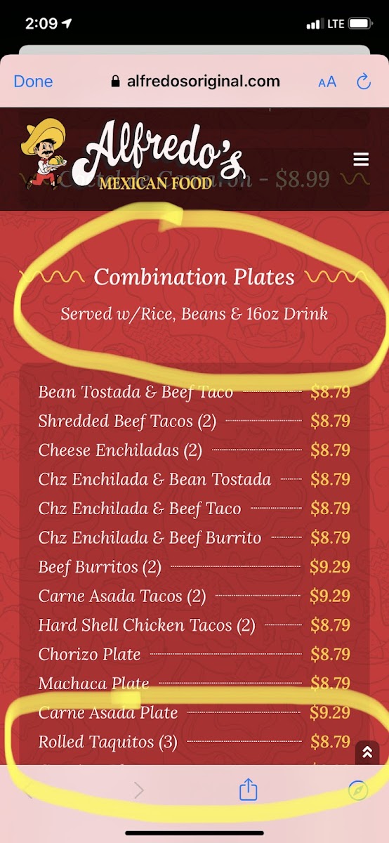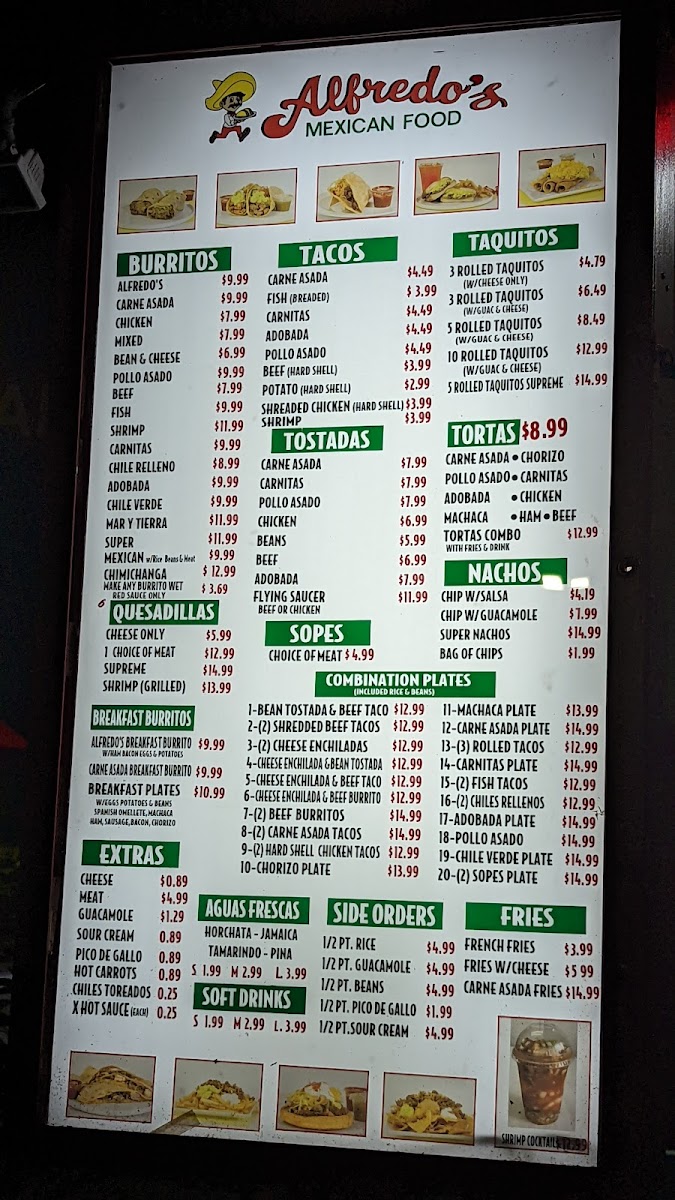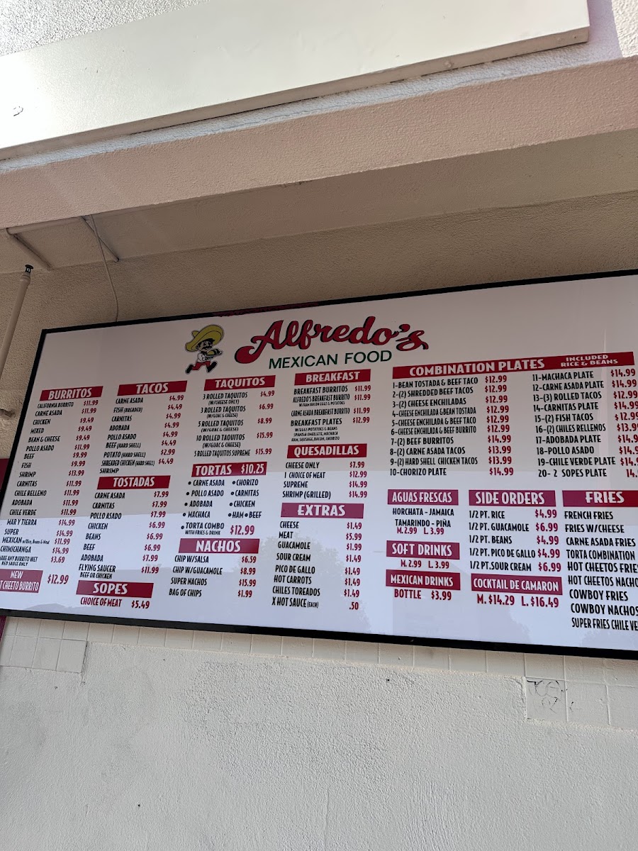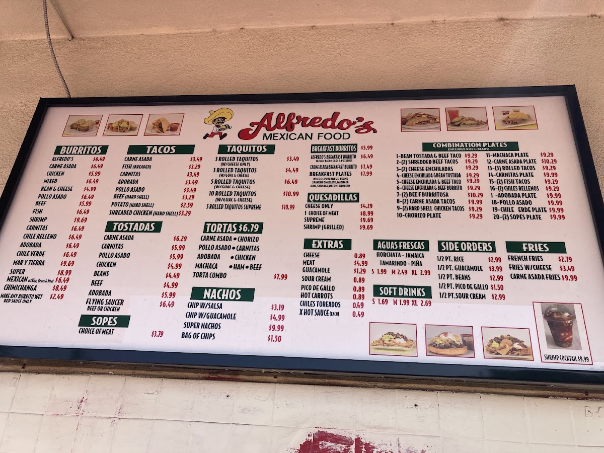 Alfredo's Mexican Food Menu